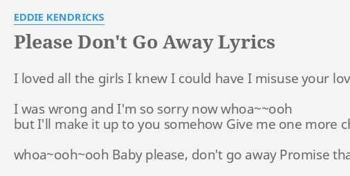 Ay ay ay ay ay All those tears I cried ay ay ay ay All those tears I cried ay ay ay ay oh Baby please dont go. Ooh ooh ooh no baby please dont go And if you leave me now youll take away the very heart of me Ooh ooh ooh no baby please dont go Ooh ooh ooh oooha I just want you to stay A love like ours is love thats hard to find How could we let it slip away Weve come too far to leave it all behind.