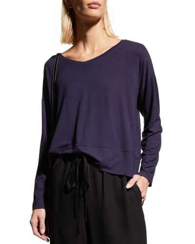 Up to 75 off regular prices when you take an extra 25 off sale clearance. Our iconic box-top with a V-neck and ribbed trim. Eileen Fisher V-Neck Boxy Top. Soft and light an organic cotton jersey with the visual texture that comes from a very fine slub yarn. Get high quality silk product from pajamas to nightgown and affordable price. A V-neck top with side slits. 285L from shoulders to hem V neckline Short sleeves Relaxed silhouette Side slits in the hem Pullover style Tencel lyocellelastane Imported Model is 510177cmDesigner.